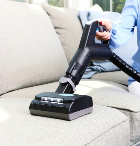 A mini escova motorizada RainbowMate é perfeita para limpar áreas de difícil acesso, como escadas alcatifadas, mobiliário estofado ou até mesmo o interior de automóveis.