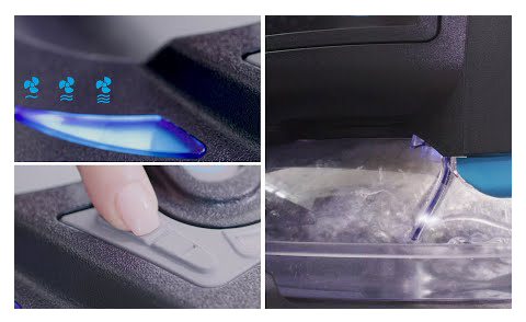 Para ar fresco e lavado com água, basta colocar o Rainbow no centro da divisão e deixá-lo funcionar na velocidade de limpeza “baixa”.